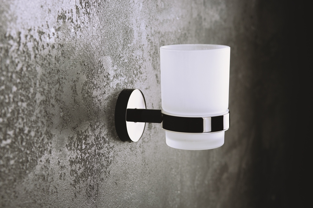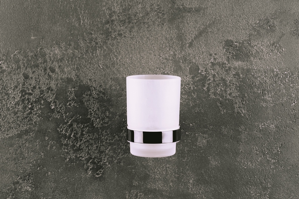 Держатель зубных щеток (стакан), выполненный в современном стиле, легко подойдёт для самых разных дизайнерских решений.