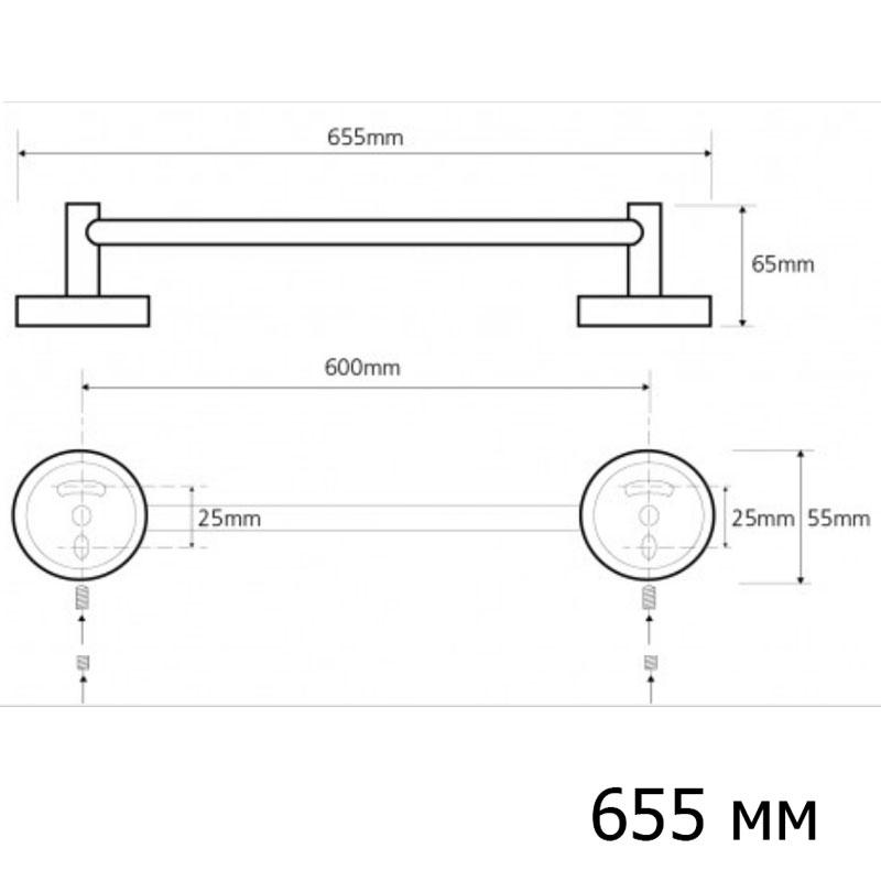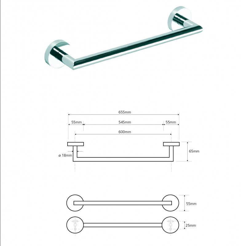 вариант l-хром: арт. 104204342 полотенцедержатель 600 mm диаметр трубы 25 mm
