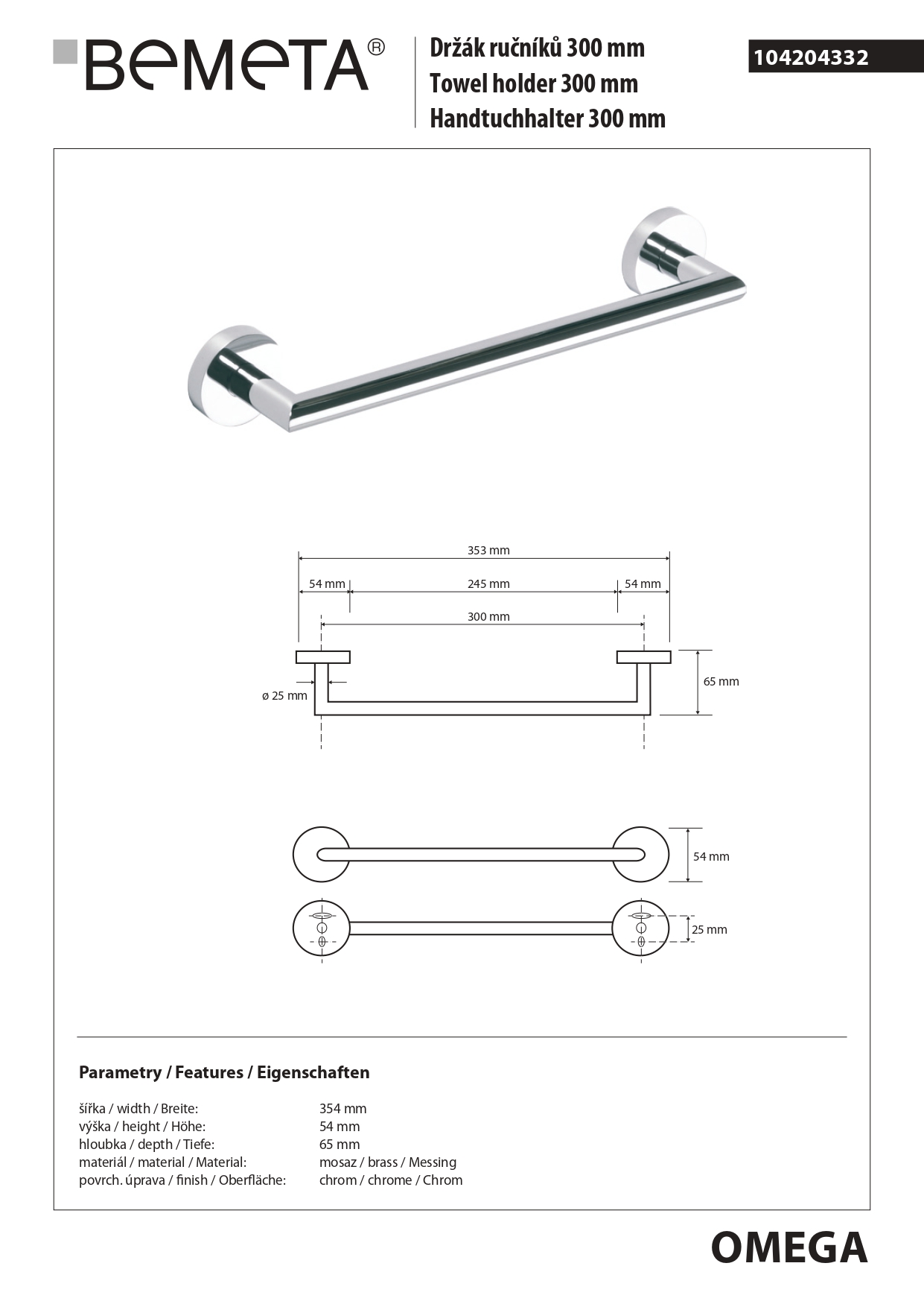 вариант k-хром: арт. 104204332 полотенцедержатель 300 mm диаметр трубы 25 mm