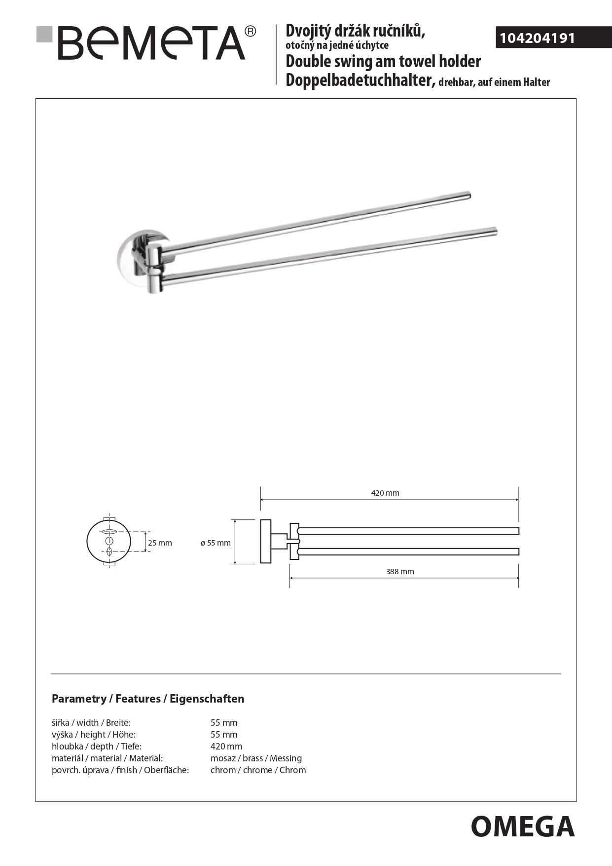 вариант c-белый: арт. 104204194 полотенцедержатель 420 mm двойной, поворотный