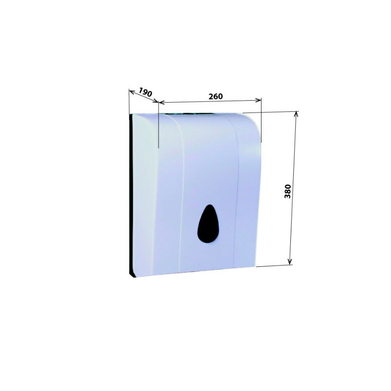 Диспенсер прямоугольной формы. Изделие практично благодаря пластику, который отлично переносит воздействие влаги. Оборудование долговечно в использовании и легко моется, достаточно струи воды или губки. Размеры: 260х380х160 мм. Аксессуар белого цвета.