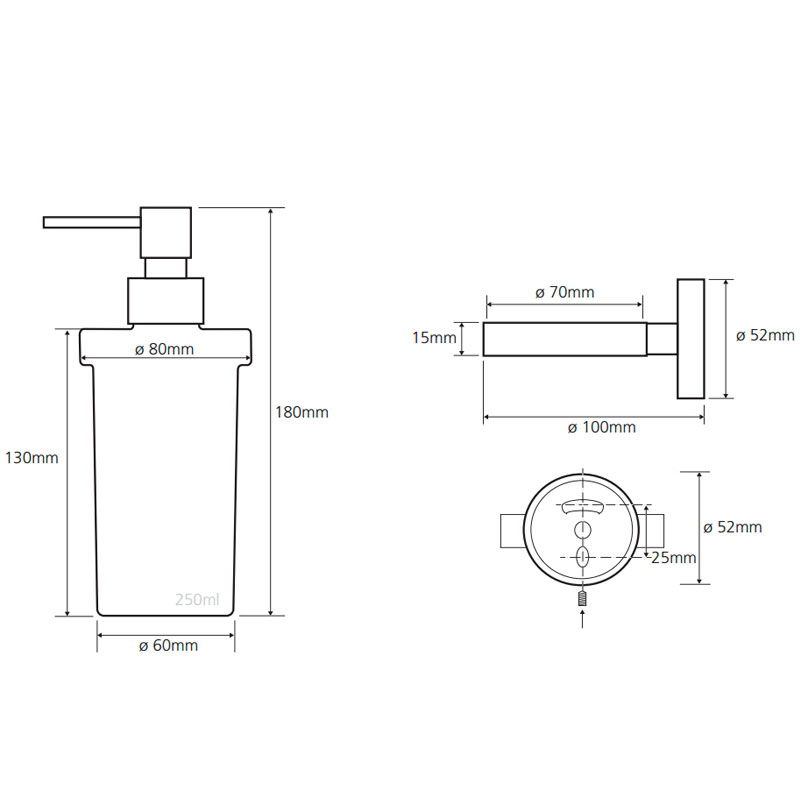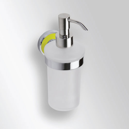 Настенный дозатор для жидкого мыла идеально подойдёт для вашей ванной комнаты. Латунь делает товар долговечным и удобным в использовании там, где высокое воздействие влаги. Серия аксессуаров TREND-I представлена 9 цветами держателей: белый, зелёный, чёрный, красный, голубой, синий, розовый, оранжевый и жёлтый. Цвета соответствуют немецкому стандарту лакокрасочной продукции RAL. Объем - 300 мл, матовое стекло.