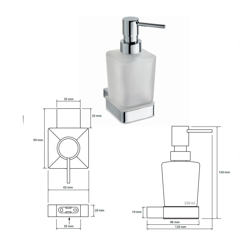 Дозатор серии VIA имеет лаконичную конструкцию. Изделие практично благодаря латуни, которая отлично переносит воздействие влаги. Аксессуар долговечен в использовании, а хромовое покрытие дополнительно защищает от потускнений и коррозии. За изделием легко ухаживать: легко моется под струёй воды. В коллекции используется высококачественное матовое стекло, которое обладает прочностью в 5-10 раз выше обычного. Объём 250мл.