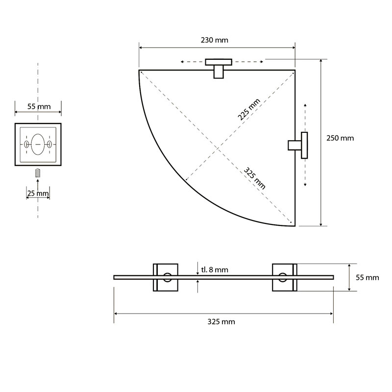 вариант a-хром: арт. 104102012 полка в душевую стекло угловая