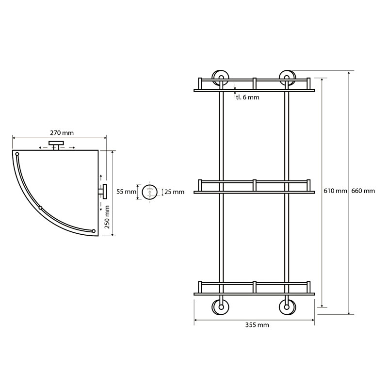 вариант e-хром: арт. 104202152 полка в душевую стекло угловая, 3-х ярусная