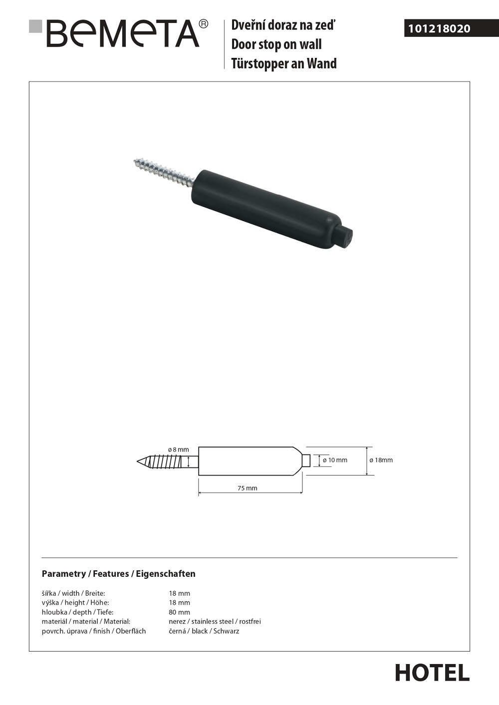 Упор сделан из нержавеющей стали и оснащён специальной резиновой вставкой. Размеры изделия: 18х18х80 мм. Исполнение бывает в хроме, золоте и нержавейка.