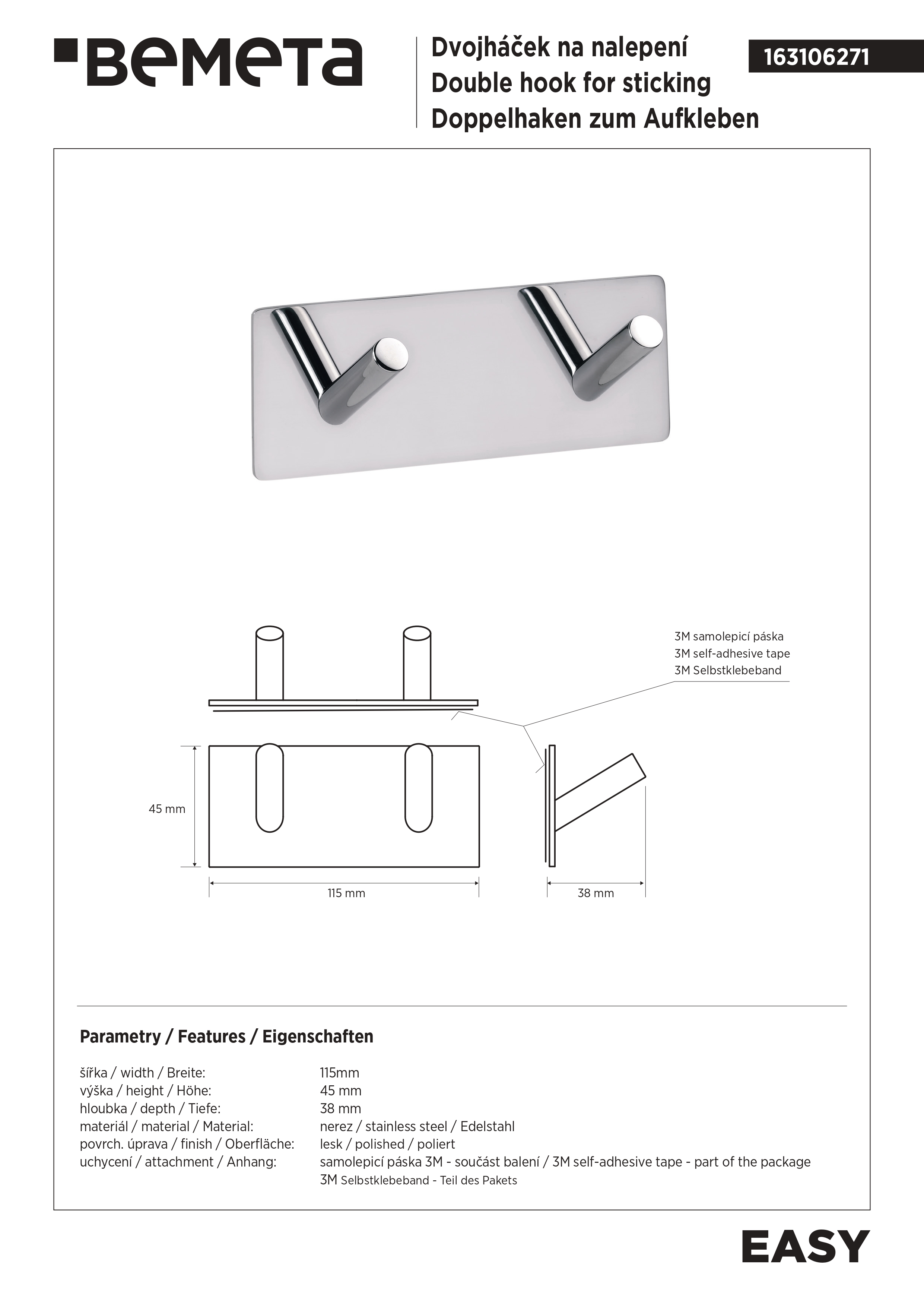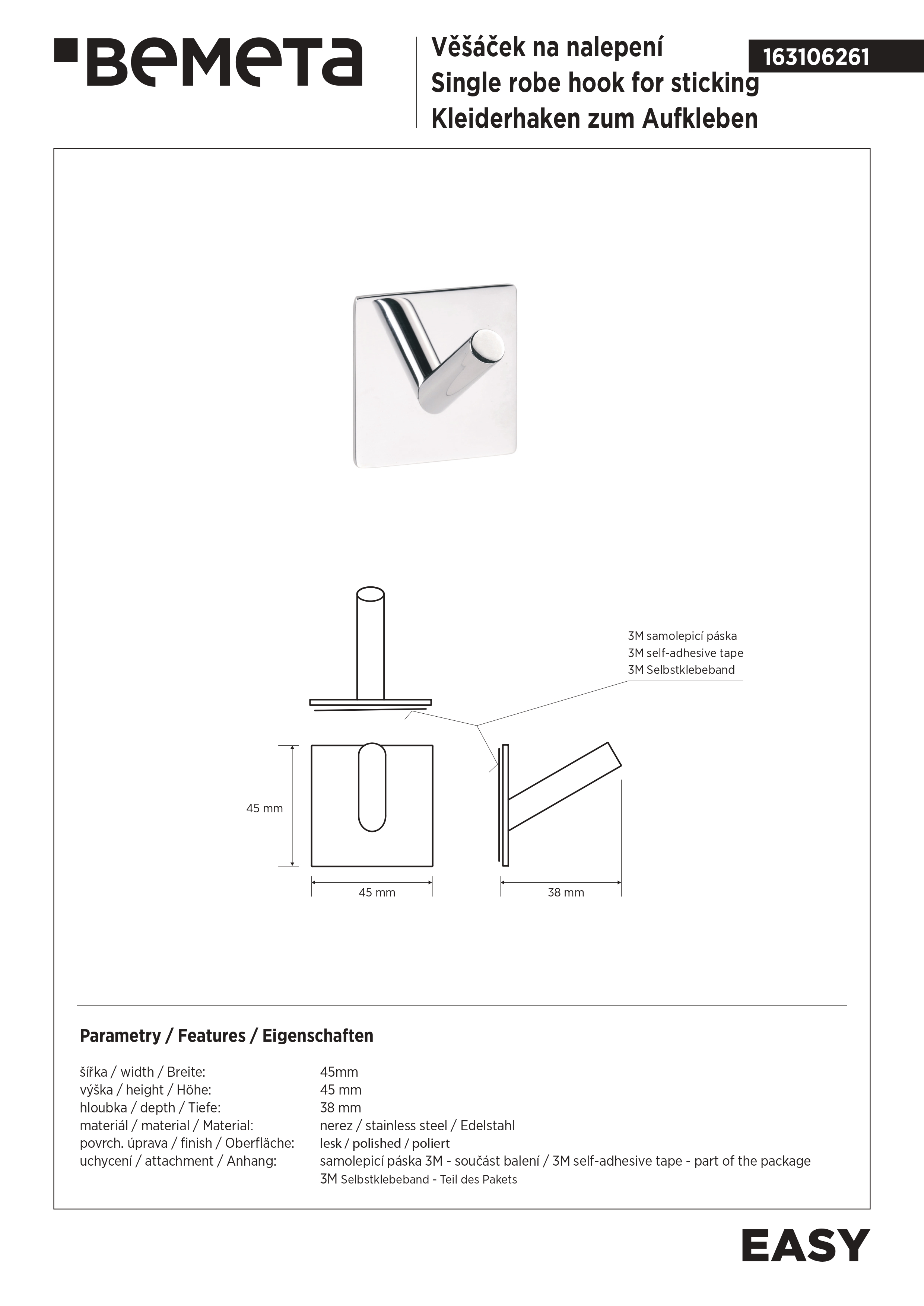 вариант d-хром: арт. 163106361 крючок одиночный крепление на 3M