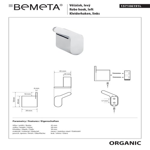 вариант b-нержавейка: арт. 157106191L крючок одиночный левый