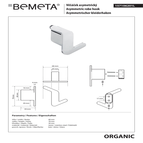 b - крючок одиночный левый, 157106191L