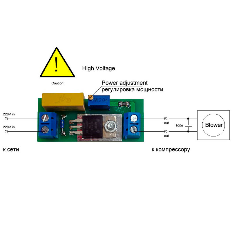 На плате имеется регулировочный винт позволяющий индивидуально подстроить работу компрессора под конкретную ванну.