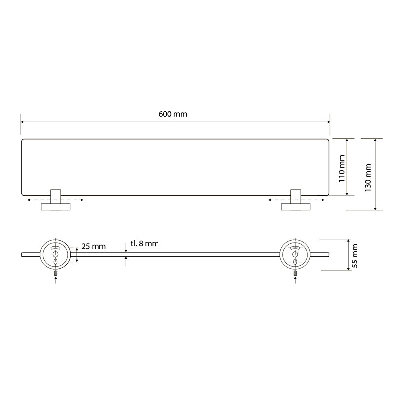 Описание вариант нержавейка: арт. 104102045 полка под зеркало стекло 600 ммвариант нержавейка/блеск: арт. 157102241 полка под зеркало стекло 600 mm