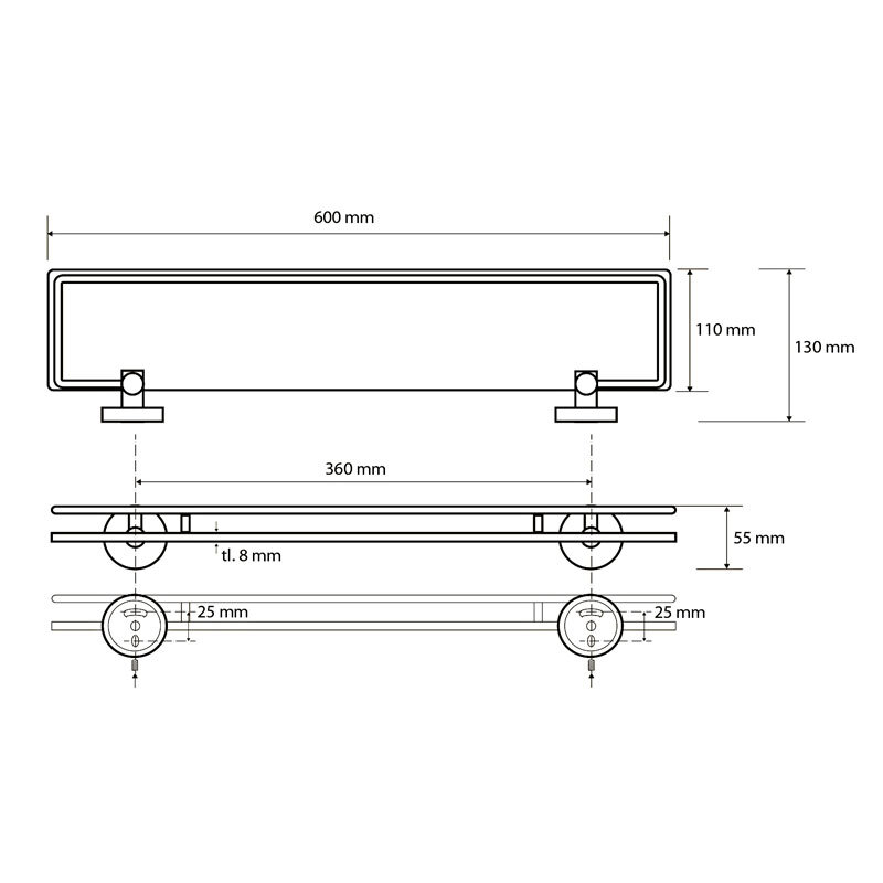 вариант a-60-хром: арт. 104102212 полка под зеркало стекло 600 mm с ограждением
