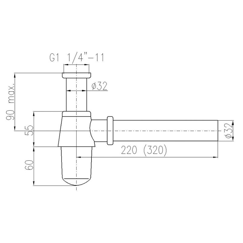 Сифон предназначен для подключения к сливной трубе диаметром 32 мм.