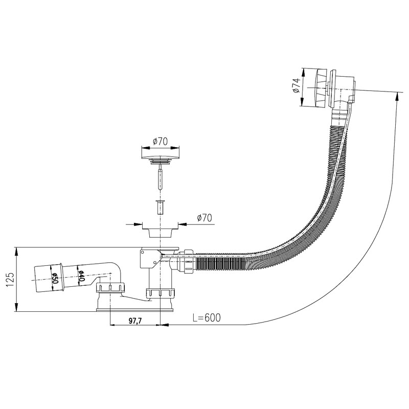 вариант черный/матовый: арт. MD0588PCMAT сифон ванны полуавтомат