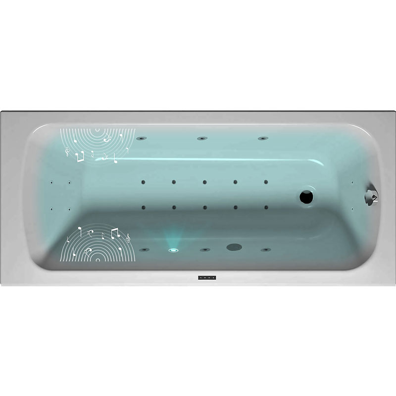 Система 6000 включает в себя гидромассаж, аэромассаж, хромотерапию и аудио блютуз,