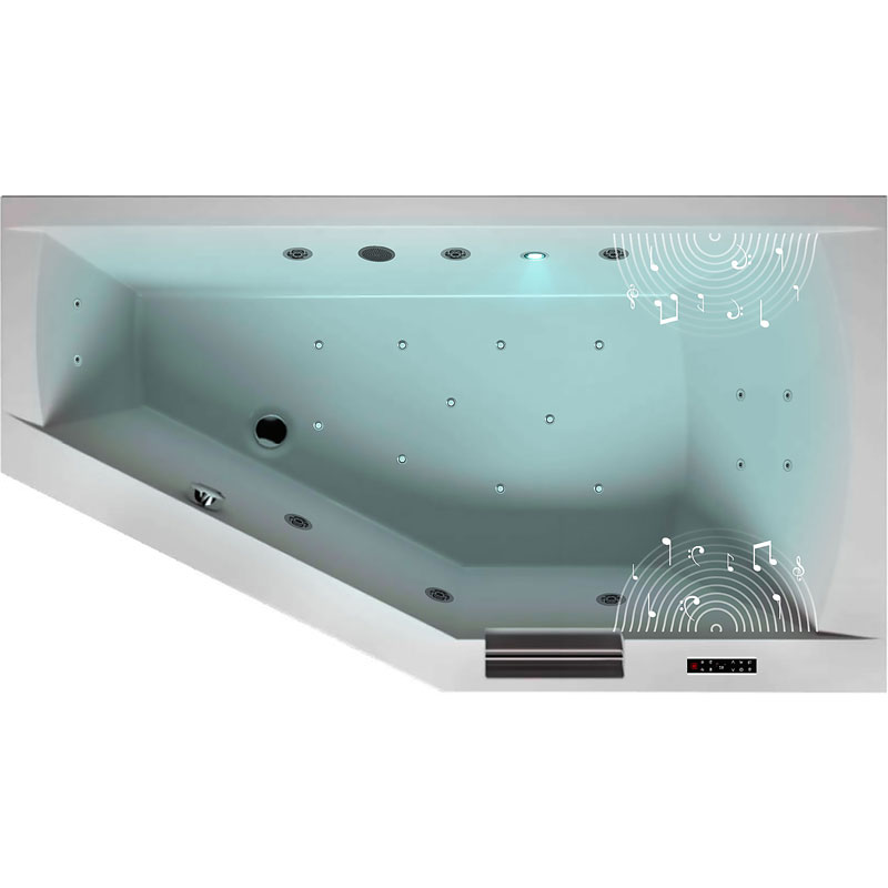 струи. Система имеет подогрев воды и помпу мощностью 1500 Вт. Аудио блютуз системы
