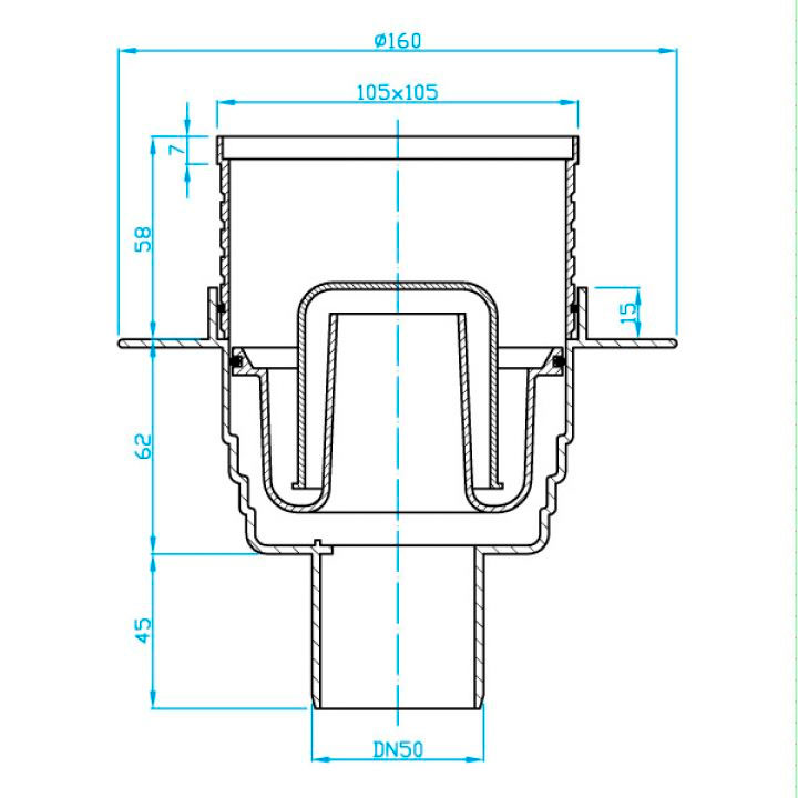 Сливной трап имеет решётку из нержавеющей стали 105х105 мм, гидрозатвор. Диаметр выхода на канализацию 50 мм. Скорость стока воды - 50,5 л/мин. Трапы PlastBrno предназначены для чистки сверху и обладают устойчивостью к химикатам для чистки отходов. В основе трапа мокрый антизапаховый затвор. Такой затвор работает по принципу воды в унитазе, которая не даёт запахам из канализации попасть в вашу ванную комнату. За дополнительную плату можно приобрести сухой антизапаховый затвор, который подойдёт для помещений, где пользование водой не постоянное (более редкое).