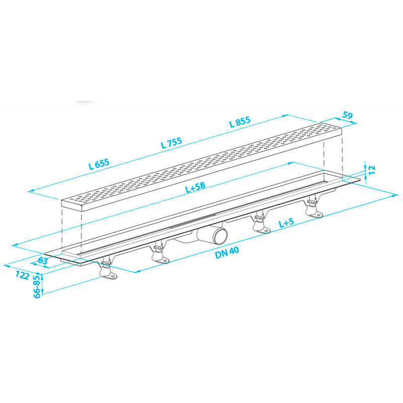 Данный сливной трап серии Design 2 представлен в разных размерах: 390, 655, 755, 855 мм.
