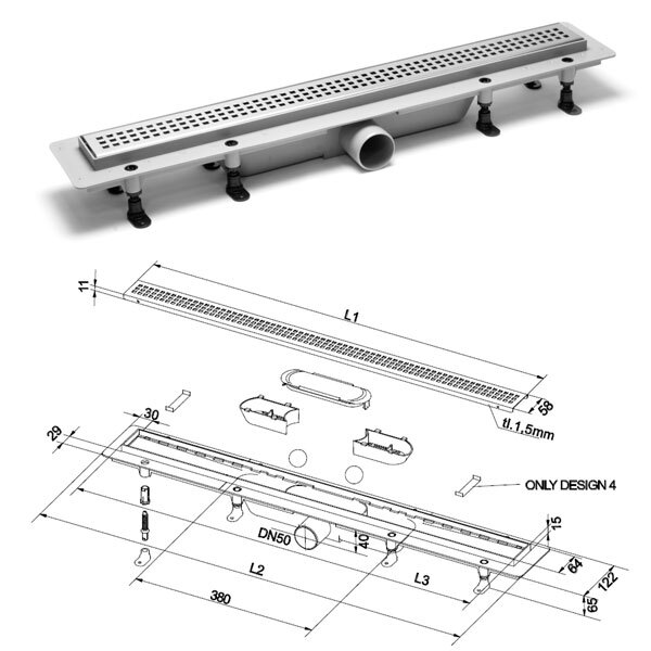 Серия NEW DESIGN 1 - это линейка трапов с классической перфорированной решёткой из нержавеющей стали для монтажа к полу. Корпус трапа сделан из полипропилена высокого качества. Прочная решётка из нержавеющей стали AISI 304, толщина которой 1,5 мм. Крепкий и надёжный фланец у трапа специально создан не узким для удобной качественной и простой установки, а полипропилен в 1,5 мм делает продукт особенно надёжным. Это доказывает максимальная нагрузка, которую гарантирует производитель - 300 кг.