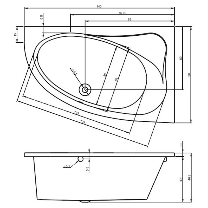 вариант ванна R-белый: арт. B019001005 ванна асимметричная Lyra 140 R