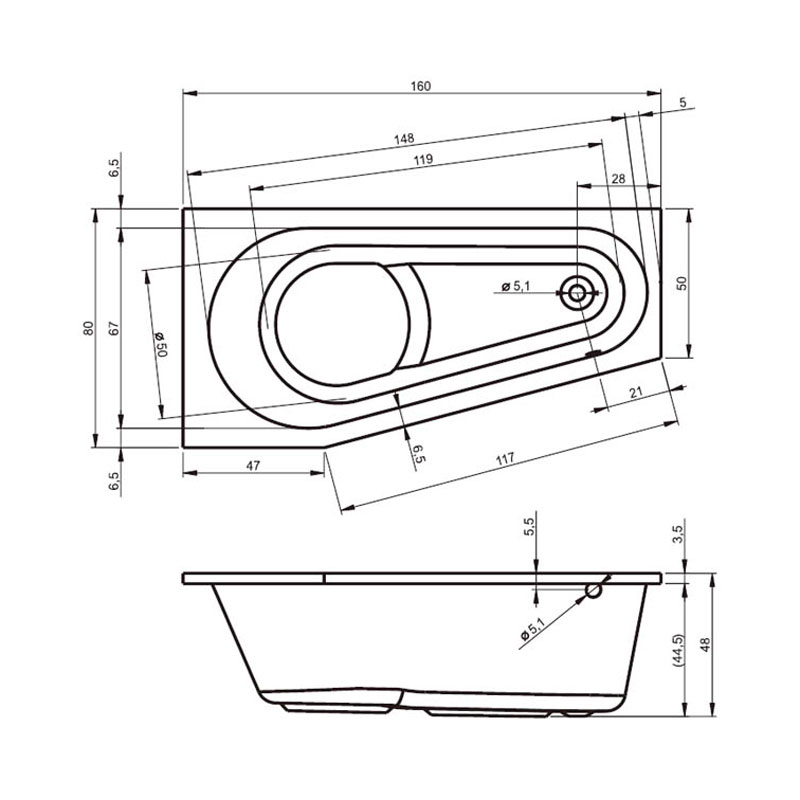 вариант ванна R-белый: арт. B068001005 ванна асимметричная Delta 160 R