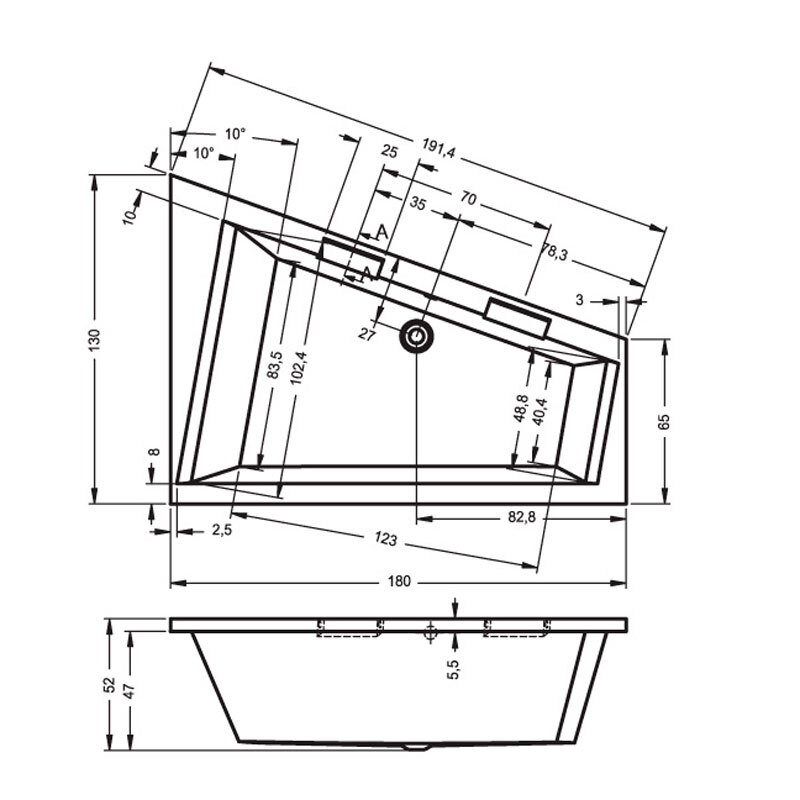 вариант R-180x130: арт. B033001005 ванна асимметричная Doppio 180 R