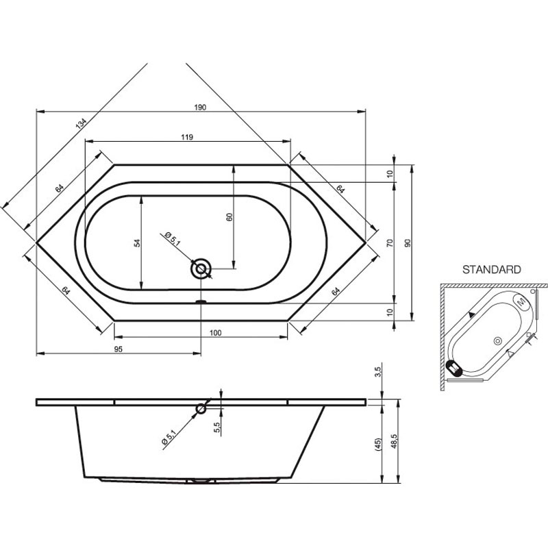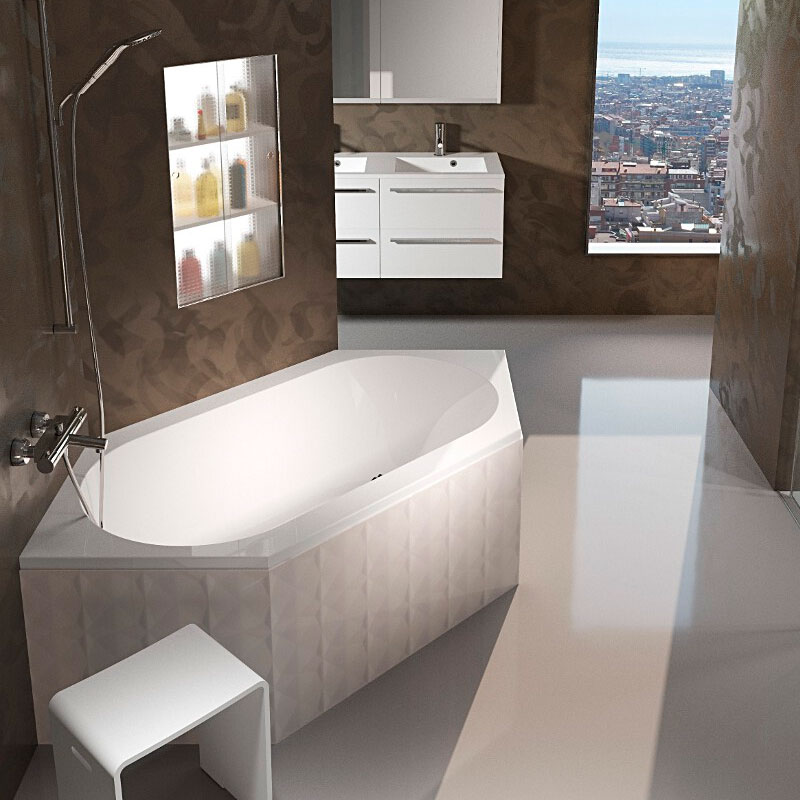 Шестиугольная ванна предназначена для установки в угол помещения и предоставляет широкие возможности для дизайнерского оформления ванной комнаты.