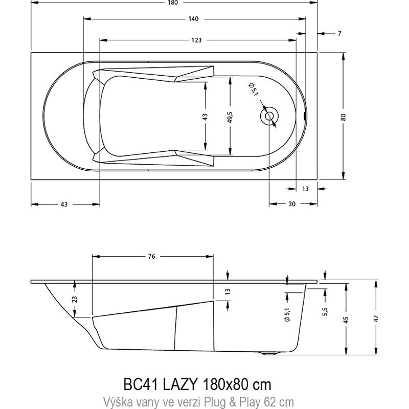 вариант 180x80-белый: арт. B081001005 ванна прямоугольная Lazy 180