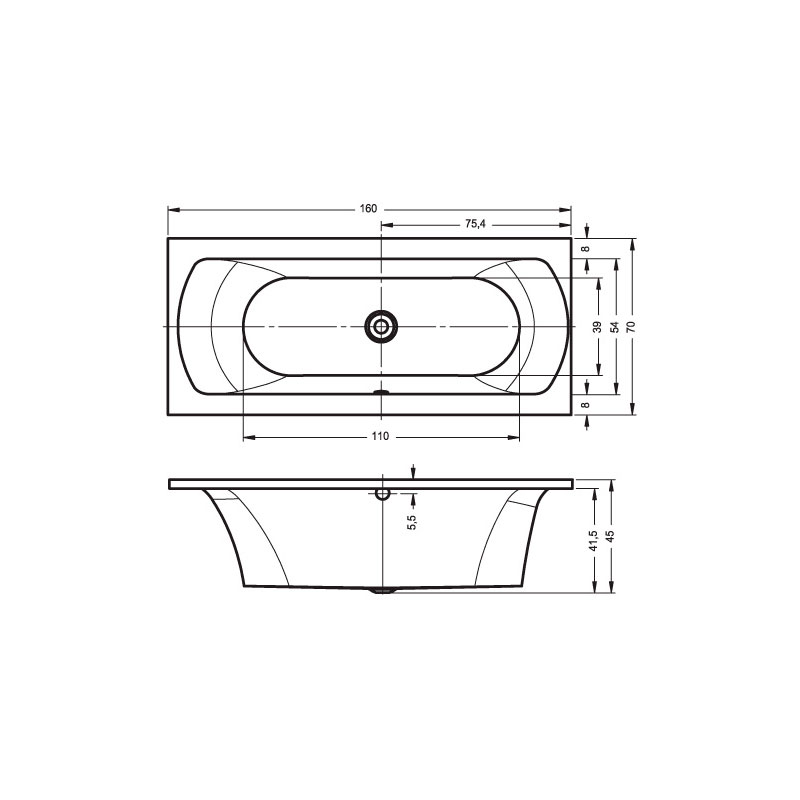вариант 160x70-белый: арт. B050001005 ванна прямоугольная Lima 160