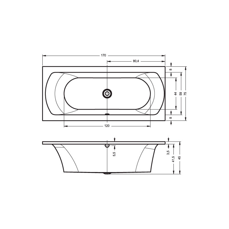 вариант 170x75-белый: арт. B051001005 ванна прямоугольная Lima 170