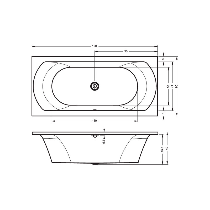 вариант 190x90-белый: арт. B053001005 ванна прямоугольная Lima 190
