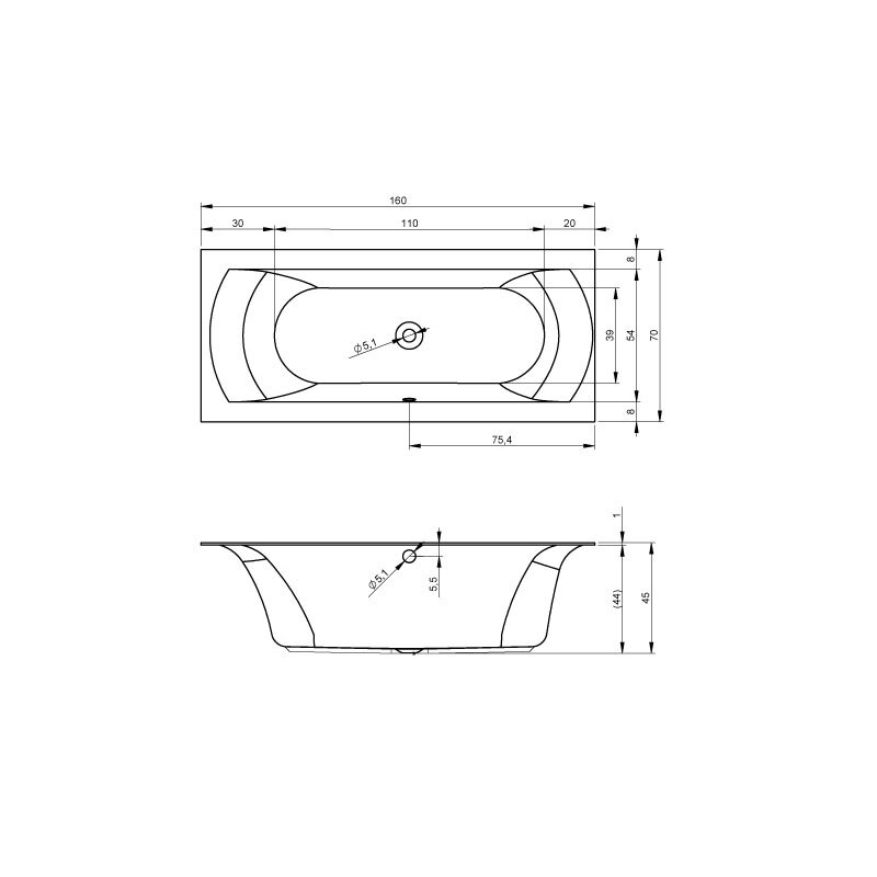 вариант 160x70-белый: арт. B140001005 ванна прямоугольная Linares 160