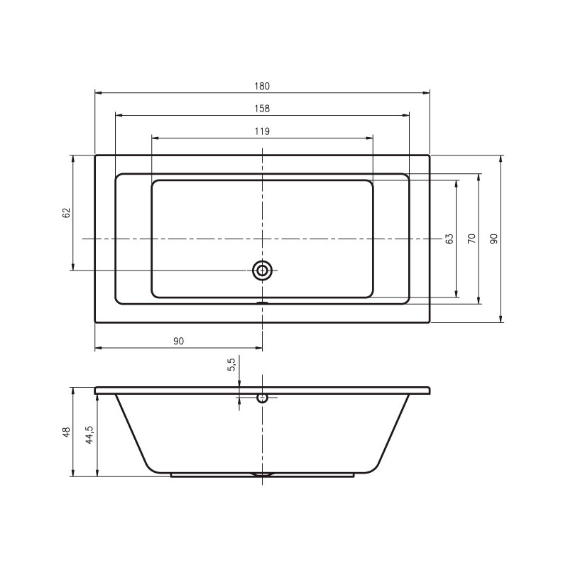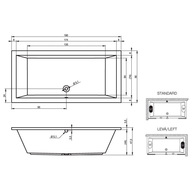 вариант 180x90-белый: арт. B026001005 ванна прямоугольная Lusso 180/90