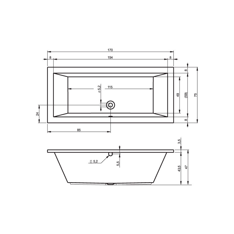 вариант 170x75-белый: арт. B007001005 ванна прямоугольная Lusso 170x75