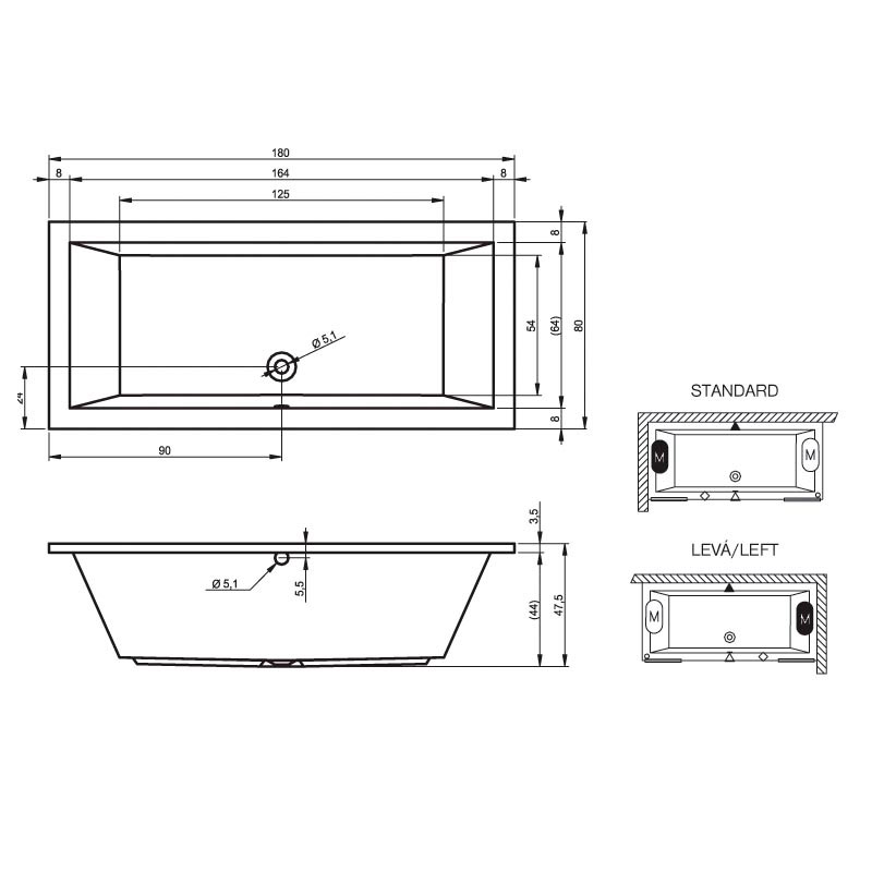 вариант 180x80-белый: арт. B036001005 ванна прямоугольная Lusso 180/80