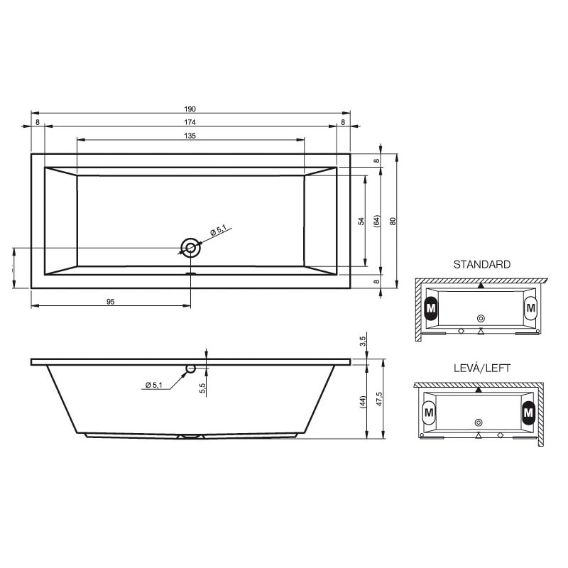вариант 190x80-белый: арт. B015001005 ванна прямоугольная Lusso 190/80