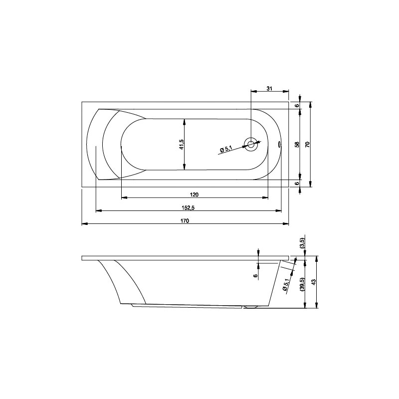 вариант 170x70-белый: арт. B060001005 ванна прямоугольная Miami 170