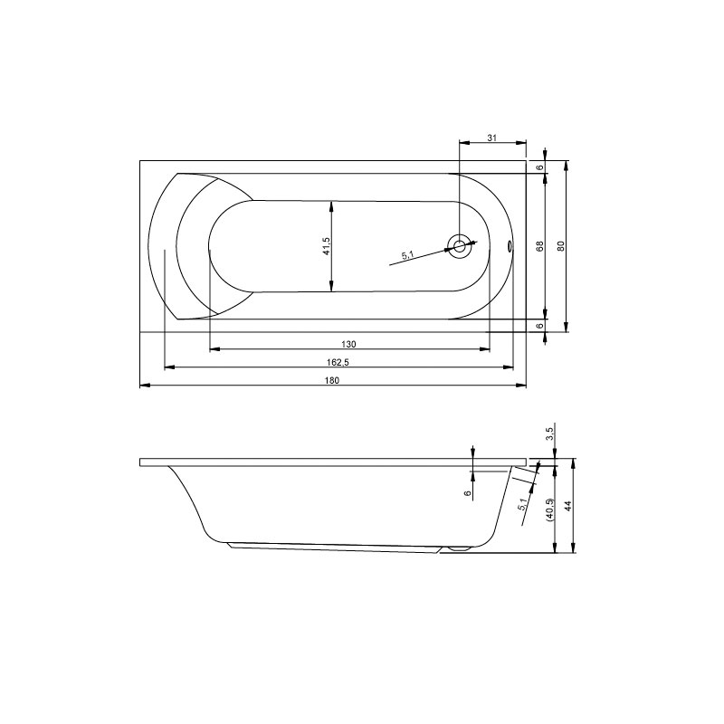 вариант 180x80-белый: арт. B061001005 ванна прямоугольная Miami 180
