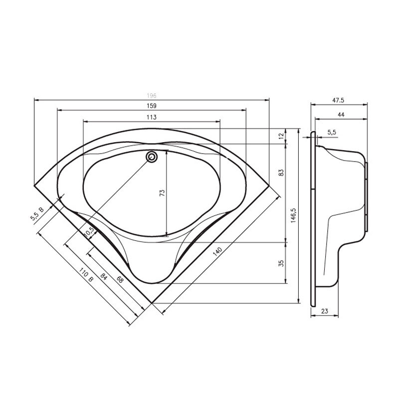 вариант ванна-белый: арт. B076001005 ванна угловая Neo 140
