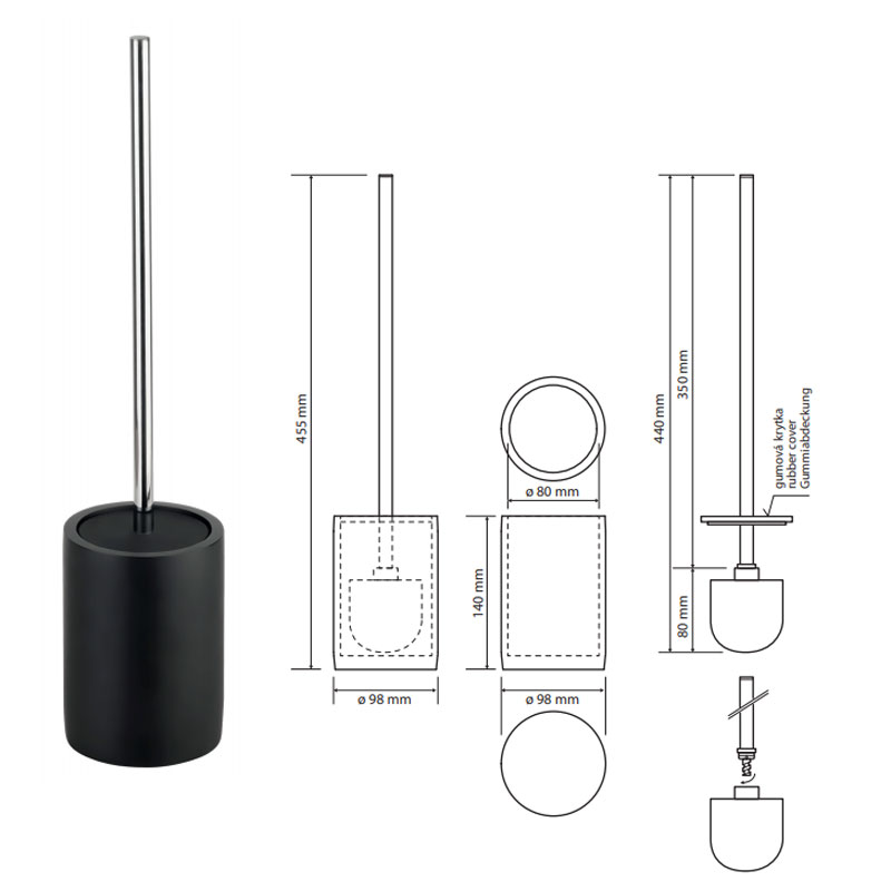 вариант a-хром/черный: арт. 145613320 ёршик для унитаза пластик круглый, отдельностоящий