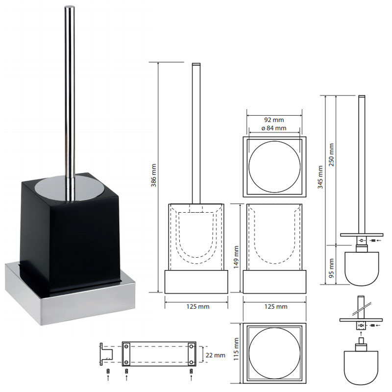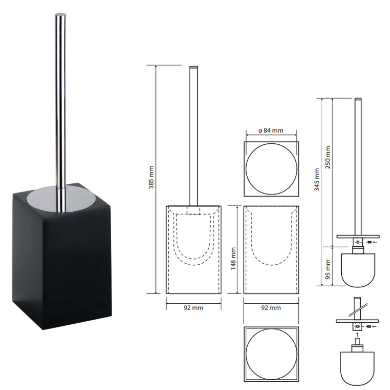 вариант b-хром/черный: арт. 145613310 ёршик для унитаза пластик квадратный, отдельностоящий