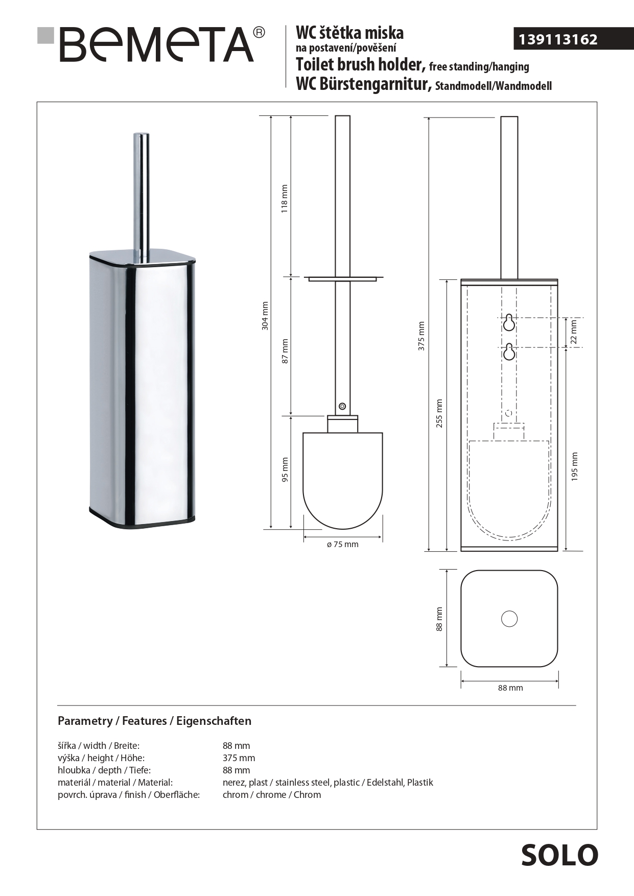 вариант b-хром: арт. 139113162 ёршик для унитаза металл подвесной/напольный